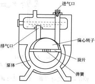 常用的真空泵为旋片式真空泵,它是使用泵油密封的一种机械泵,其结构如图1所示。